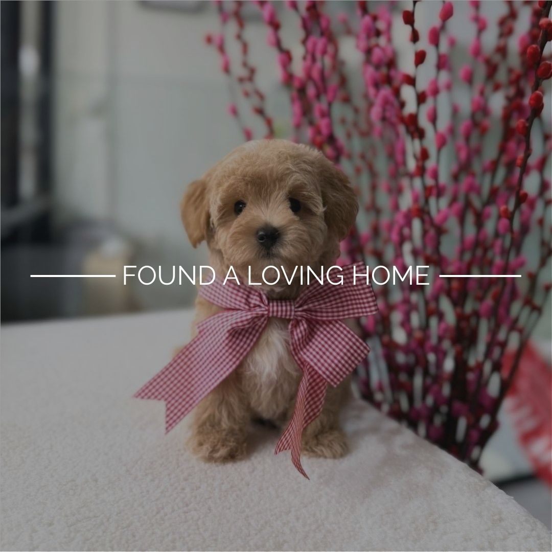 Runae’s rich red coat glows warmly against his bright, soulful eyes. This Maltipoo boy carries a cozy, heartwarming charm that melts hearts instantly.