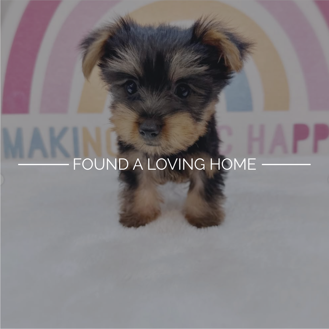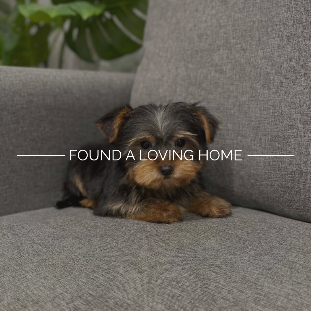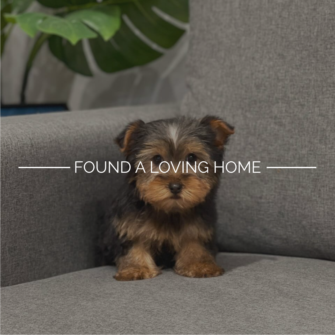 Clove’s silky sable coat drapes around her like a tiny royal cloak. Her bright, curious eyes give her a look of sweet mischief. This Yorkshire Terrier is ready to be your little shadow.